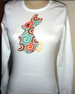 Her quirky style is filled with unique touches: she sews on the back as well with a design that subtly relates to the front of the tee. Loo Loo Tees also have a philosophical component, an understated mission to spread a little peace in the world by incorporating the word “Peace,” which is hidden somewhere in each design.